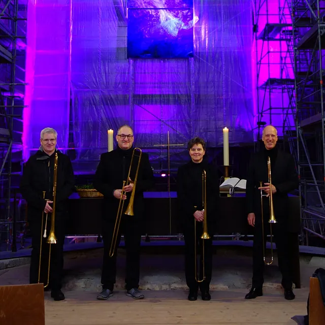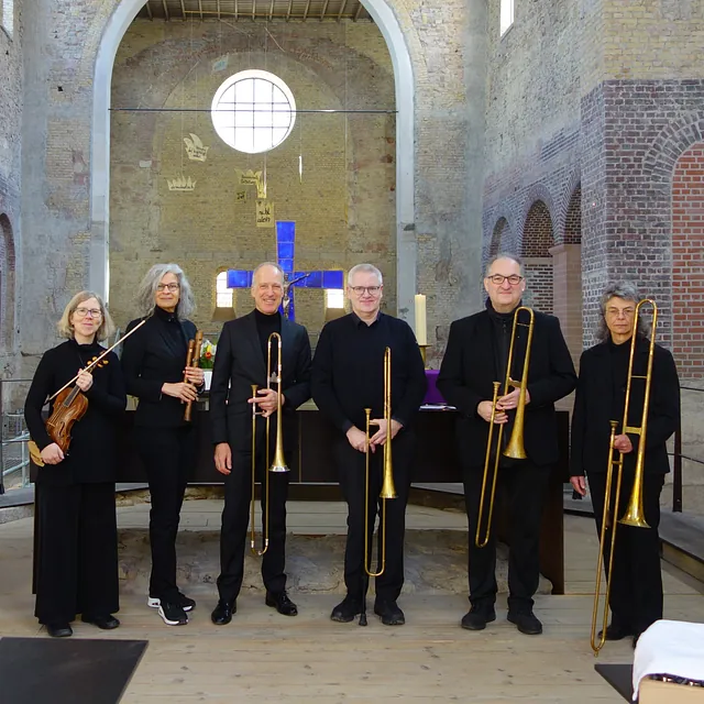 Wir musizieren auf historischen Instrumenten wie Barockposaunen, Barockgeigen, Blockflöten, Truhenorgel und Theorbe – manchmal zusammen mit Gesangssolisten.