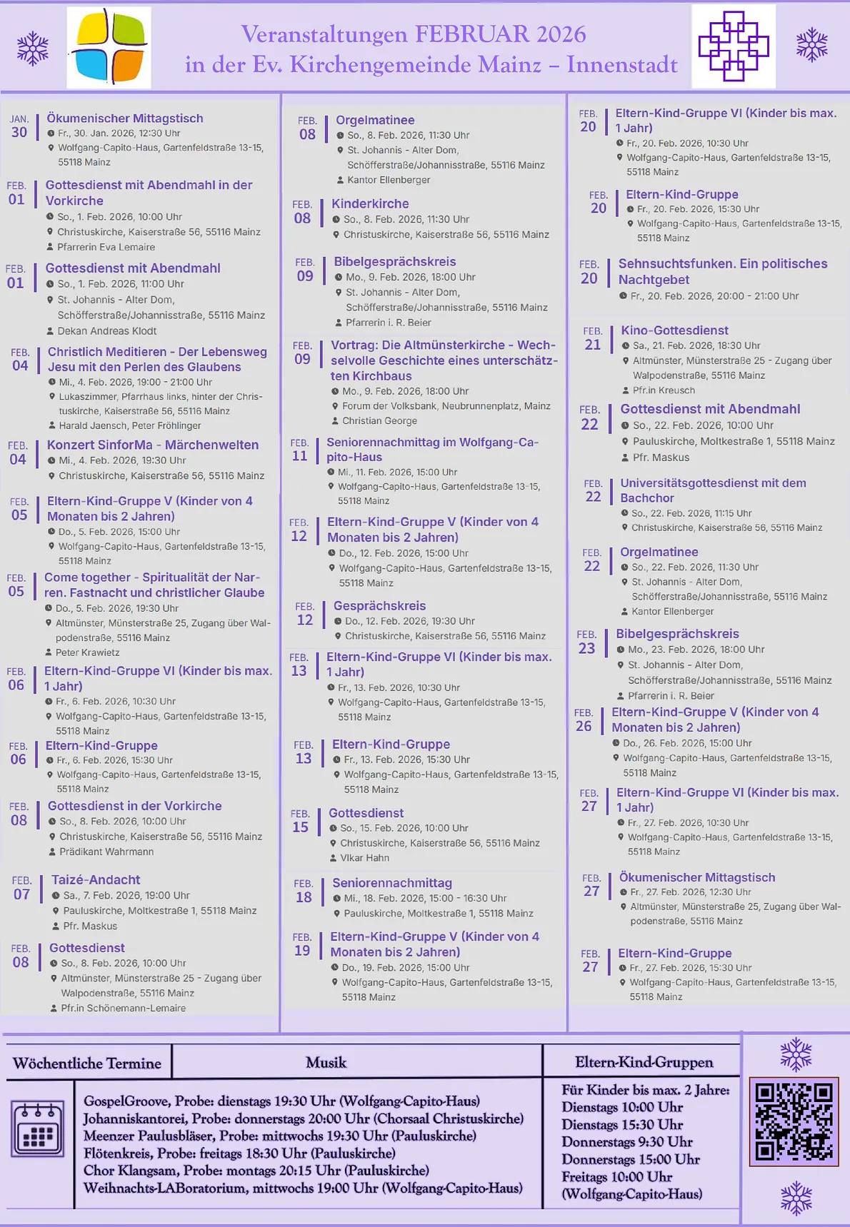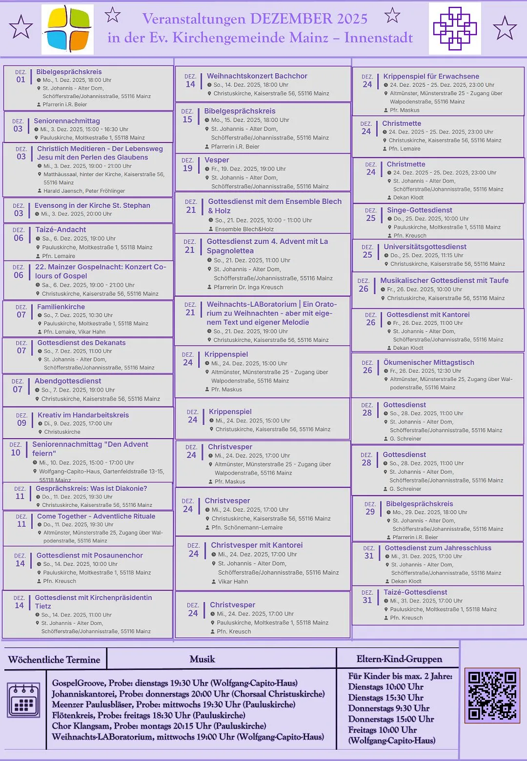Schreiben Sie an christuskirchengemeinde.mainz@ekhn.de, um in unseren kostenlosen E-Mail-Verteiler aufgenommen zu werden.